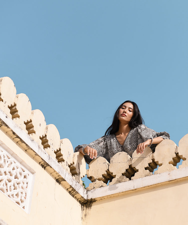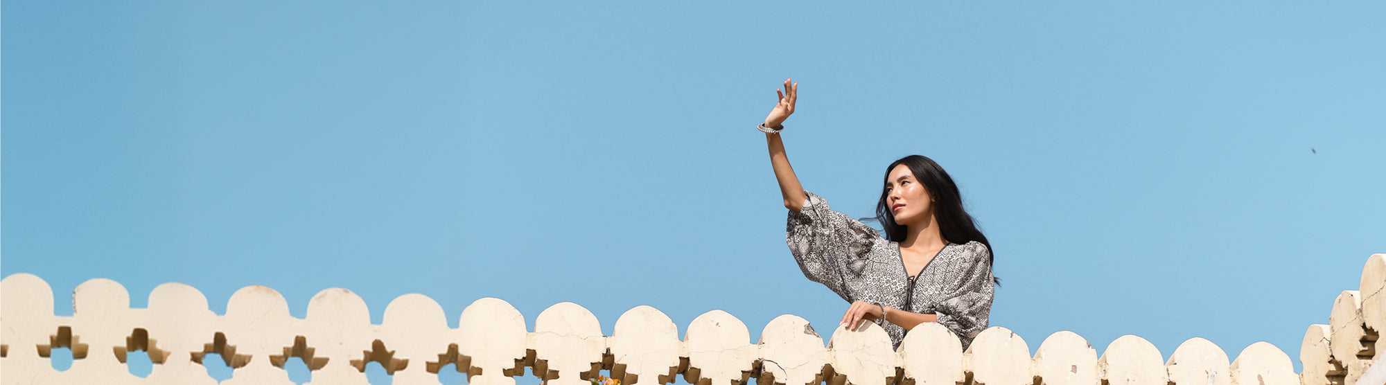 Our slow fashion garments are hand-crafted and serve to support Indian women in the workplace as well as the preservation of ancient methods of textile production. We follow a zero-waste design and production process and produce minimal quantities to eliminate any possibility of excess waste. Every purchase contributes to women empowerment projects in India through our charity partners and supports local Indian communities to continue their sustainable hand-craftsmanship for future generations.